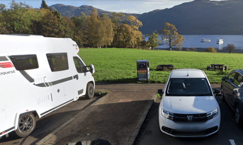Nestled within the Trossachs National Park along the shores of Loch Lomond, this site offers a caf with accompanying toilets. Guests may empty their chemical toilet waste after caf operating hours. Conveniently located, there is a nearby pub and tearoom for visitors to enjoy. Parking is available on a pay and display basis, from 6 pm to 10 am, allowing for a one-night stay with no return allowed within 48 hours. Visitors are required to park in one of the two designated bays.